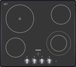 Rechtsdrehend aufsteigender Energieregler, zur stufenlosen Regulierung der Kochplatten.