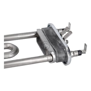 Heizstab mit Öffnung für Temperaturbegrenzer/-fühler im Flansch, mit randerhöhter Gummidichtung und mit integrierter Thermosicherung. Der elektrische Anschluss in dem Frontlader Waschautomat erfolgt über die 2 x 6,3 mm AMP Steckfahnen + Erdung