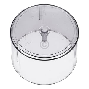 Transparenter Kunststoffbehälter bzw. Becher für ca. 500 ml Inhalt - inklusive weißem Messereinsatz und 3 grauen Gummifüßen. Z.T. passender weißer Deckel bzw. Getriebe für diesen Universalzerkleinerer des Handmixers / Stabmixers siehe BSH-Nr. 00651140